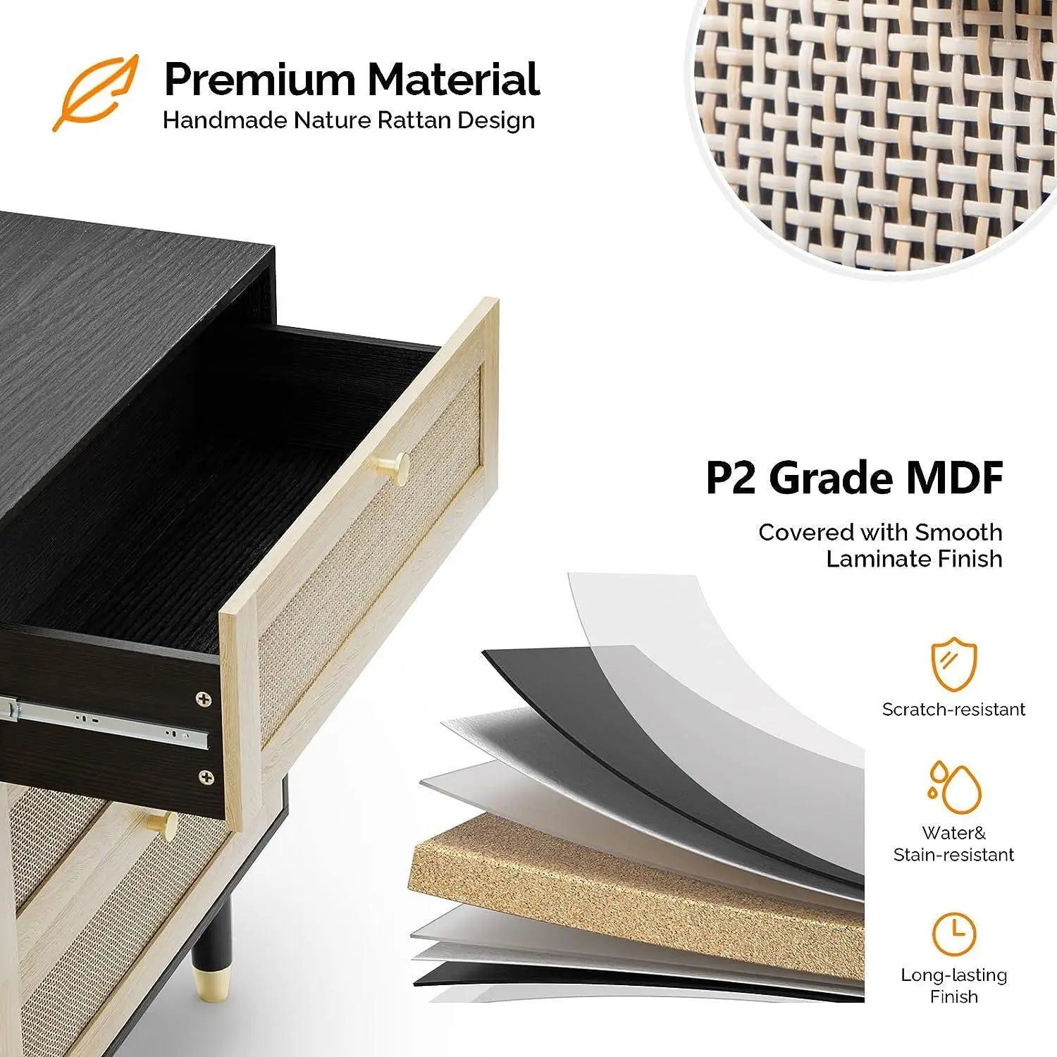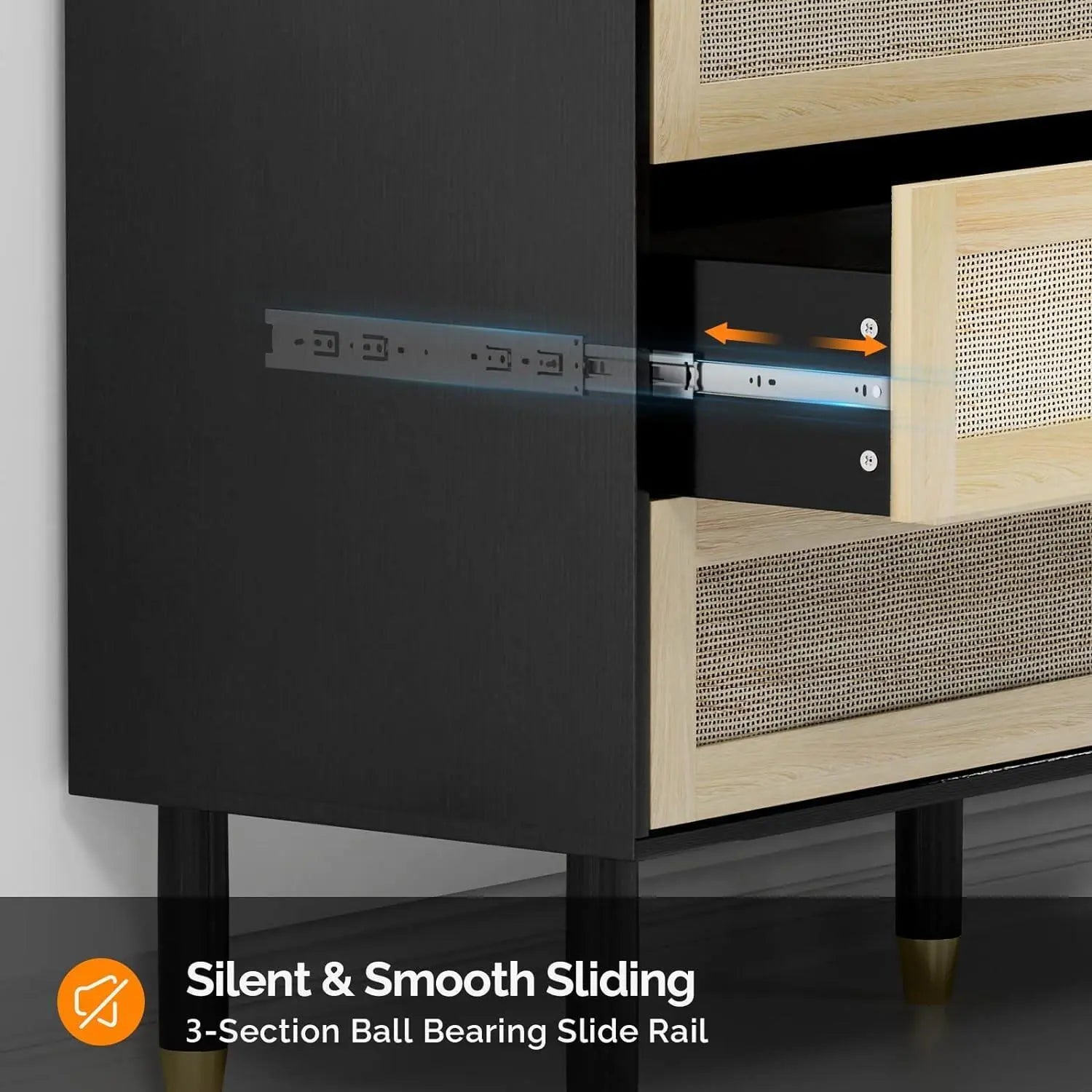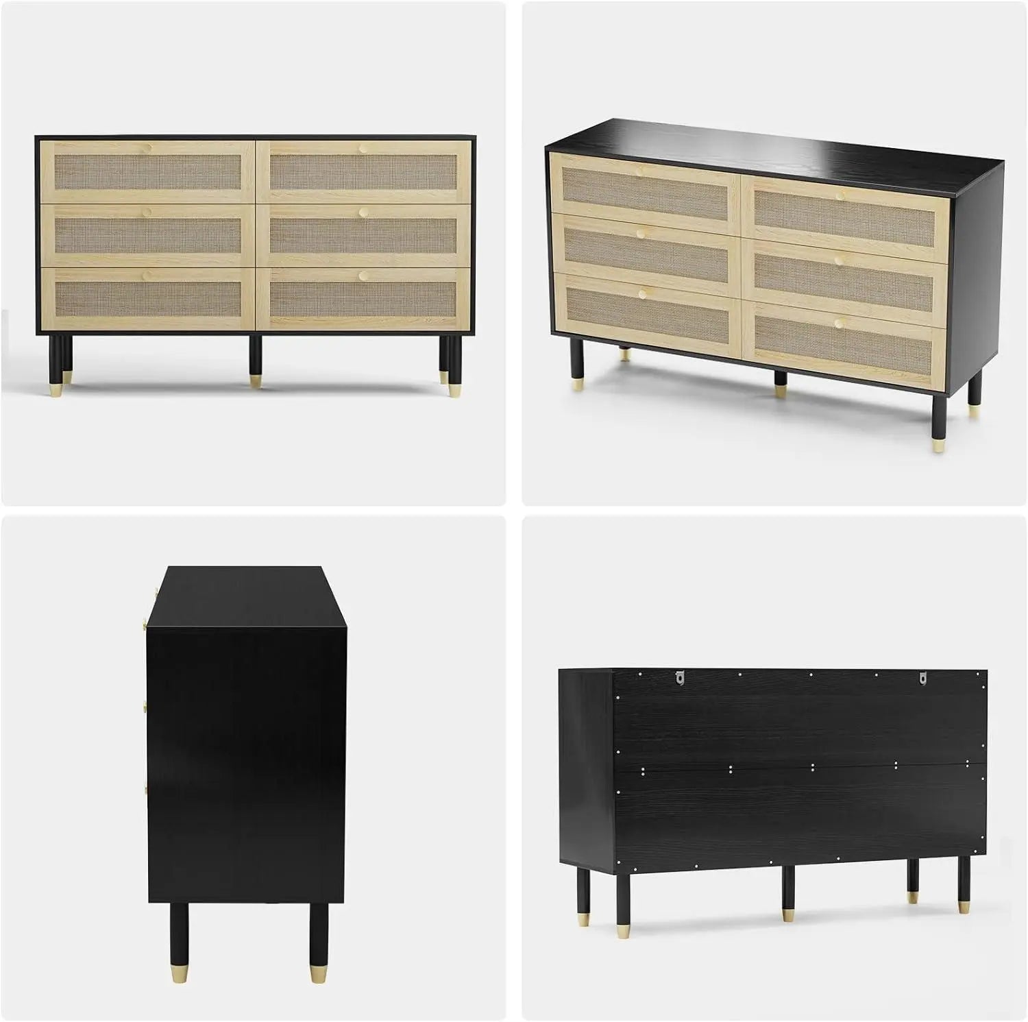 Clark Rattan Wide Black 6 Drawer Chest Dresser