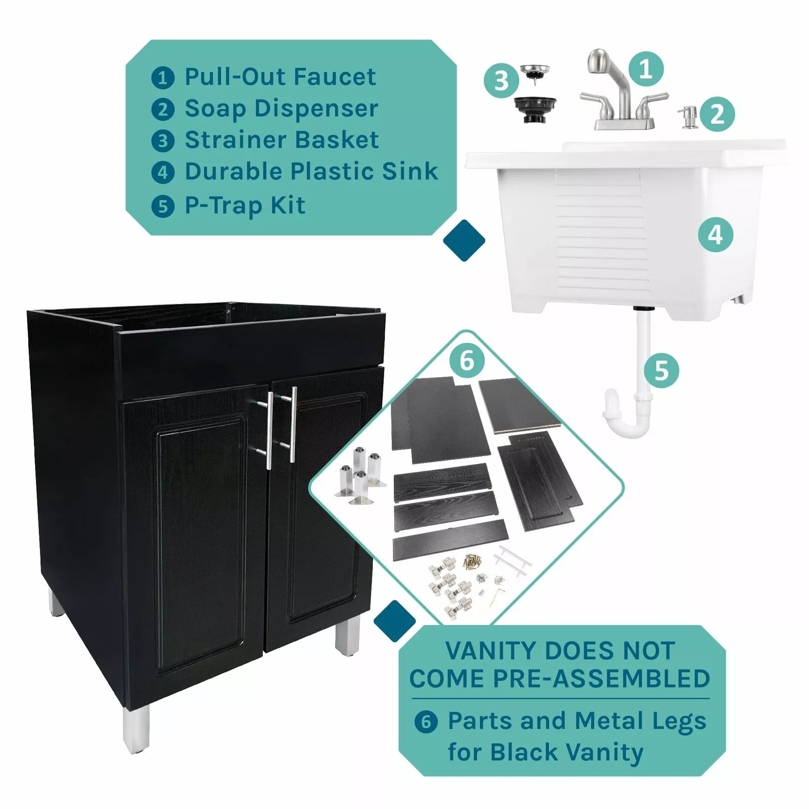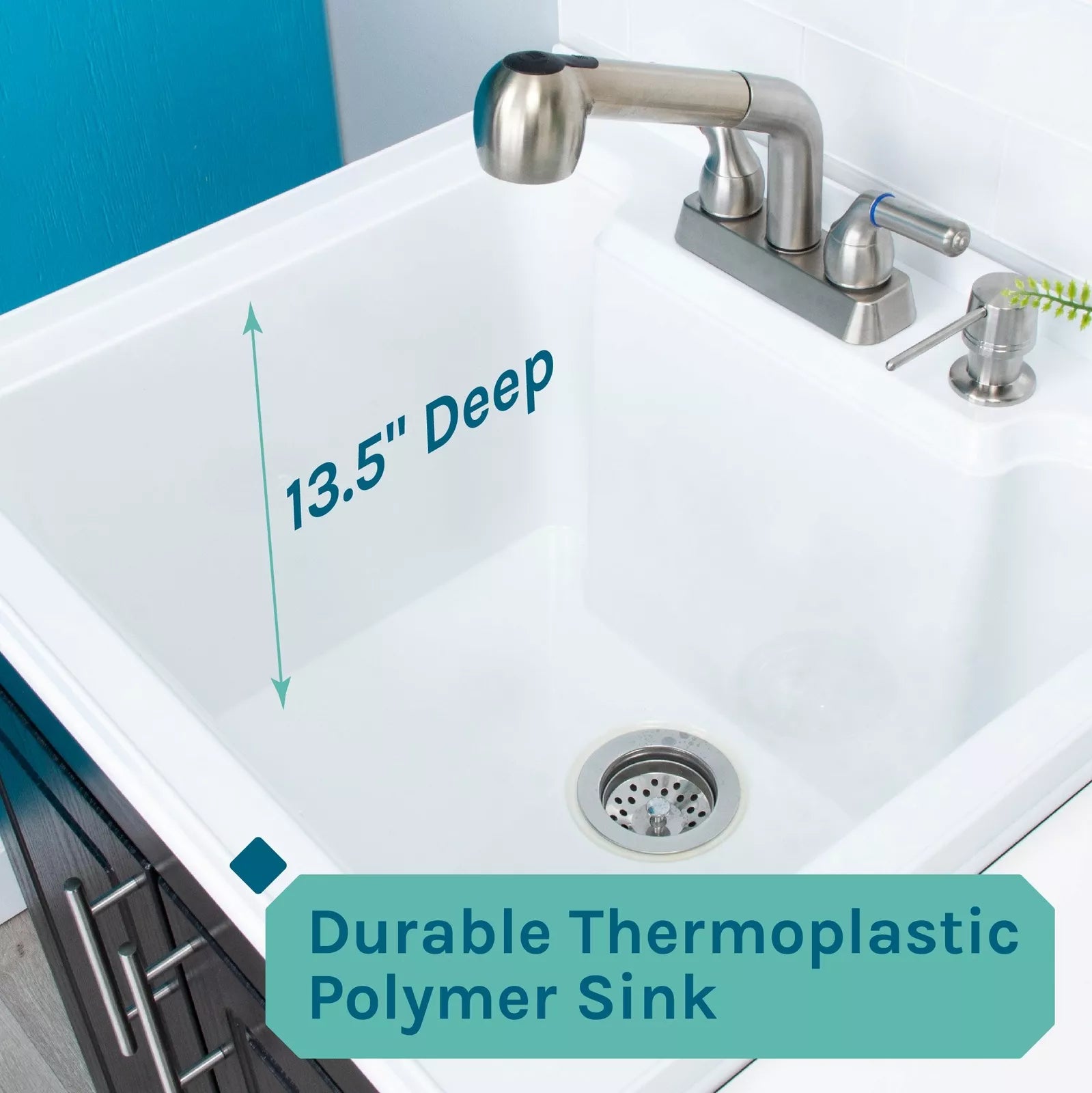 This utility sink and cabinet's sleek design and sturdy construction make it a practical addition to any laundry area, providing both convenience and organization. Upgrade your laundry room with our chic and efficient utility room sink cabinet, designed to make everyday tasks easier and more stylish.