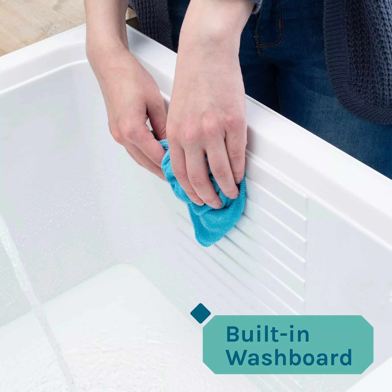 Introducing our utility laundry sink with cabinet, the ultimate solution for combining functionality and style in your laundry room. Crafted from high-quality materials, this laundry cabinet with sink features a durable sink and ample storage space for cleaning supplies, detergents, and other essentials.