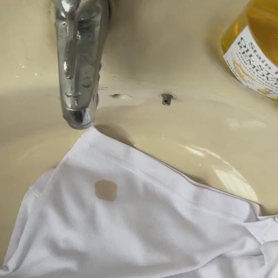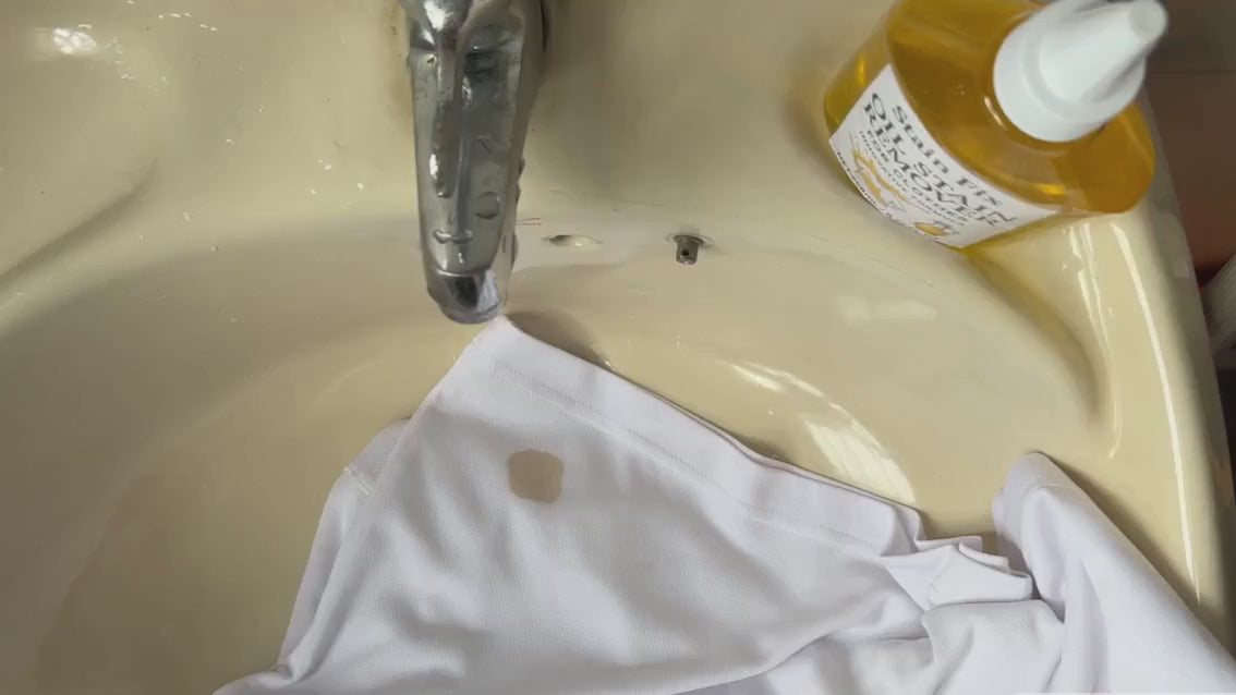 - Gently rub the stain with your hands with some water until the stain disappears, and rinse with clean water.