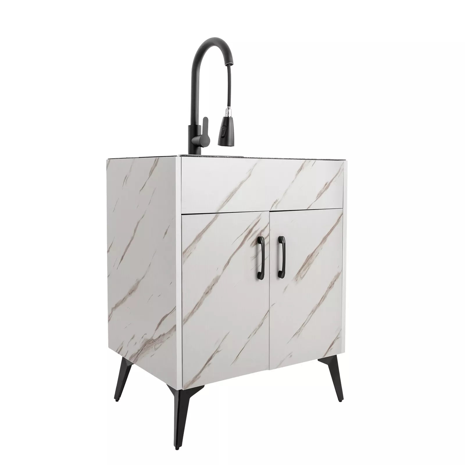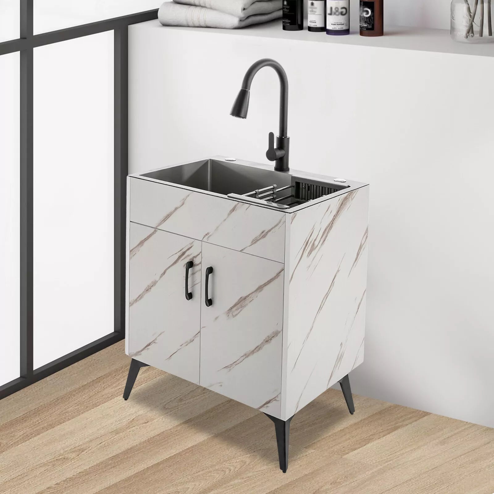 This utility sink and cabinet's sleek design and sturdy construction make it a practical addition to any laundry area, providing both convenience and organization. Upgrade your laundry room with our chic and efficient utility room sink cabinet, designed to make everyday tasks easier and more stylish.