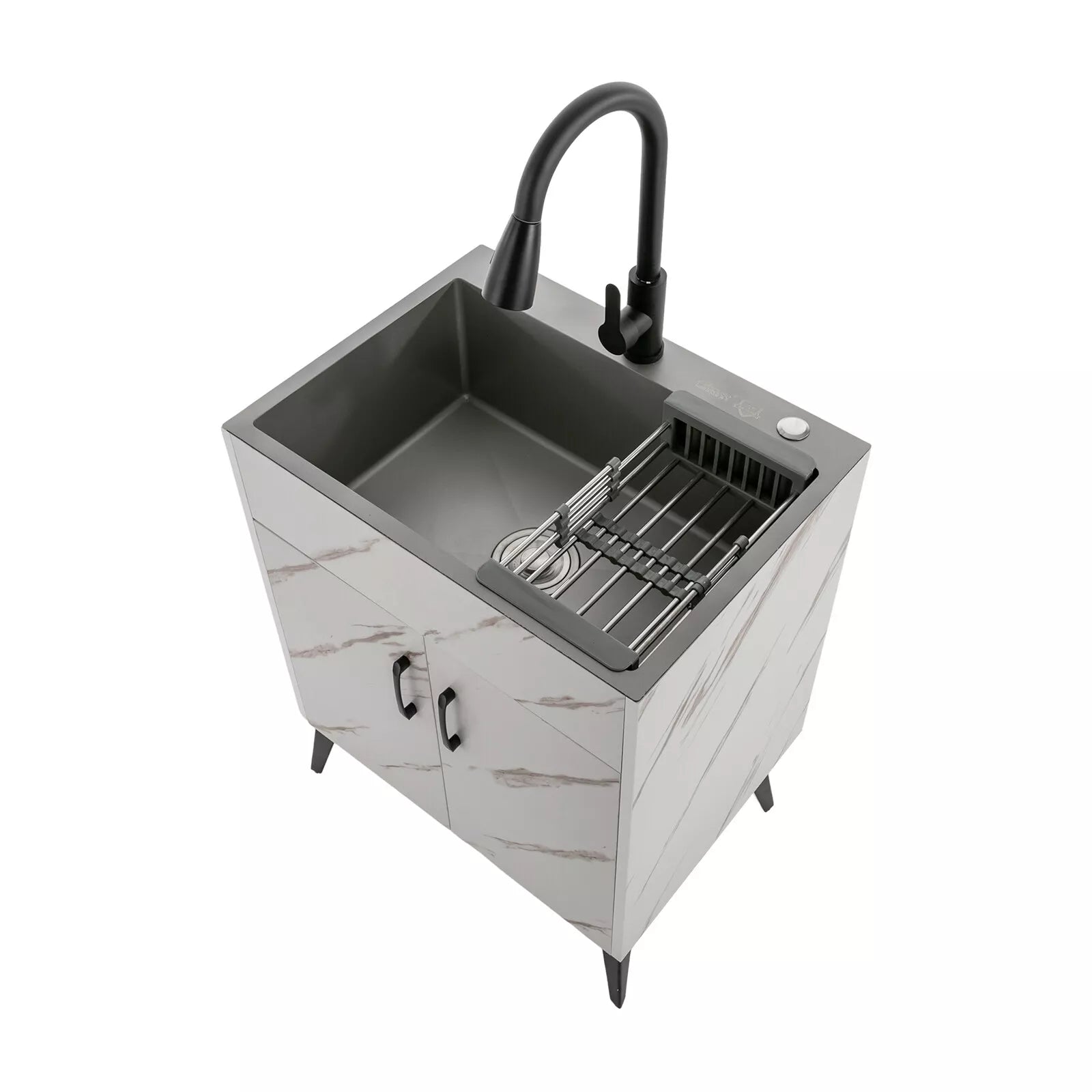 Introducing our utility laundry sink with cabinet, the ultimate solution for combining functionality and style in your laundry room. Crafted from high-quality materials, this laundry cabinet with sink features a durable sink and ample storage space for cleaning supplies, detergents, and other essentials.