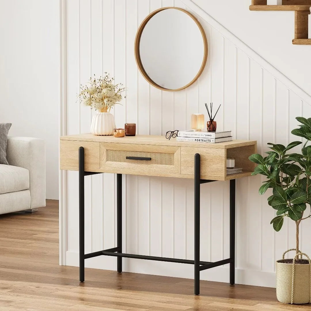 Crafted from high-quality materials, this entrance console table's modern silhouette and elegant finish complement any decor, making it a versatile addition to your home. Elevate your entryway with our chic and practical foyer table, combining form and function for a welcoming touch.