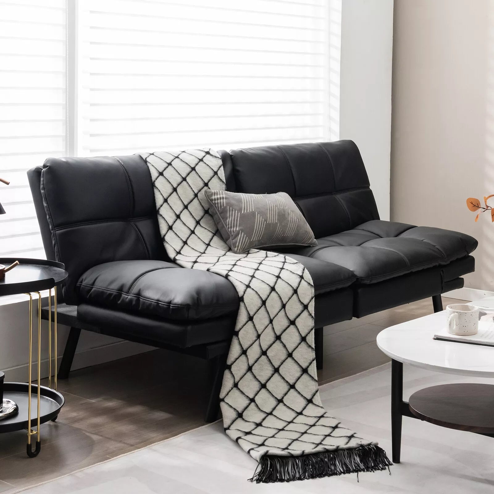 Leather Memory Foam Convertible Futon Sofa Bed